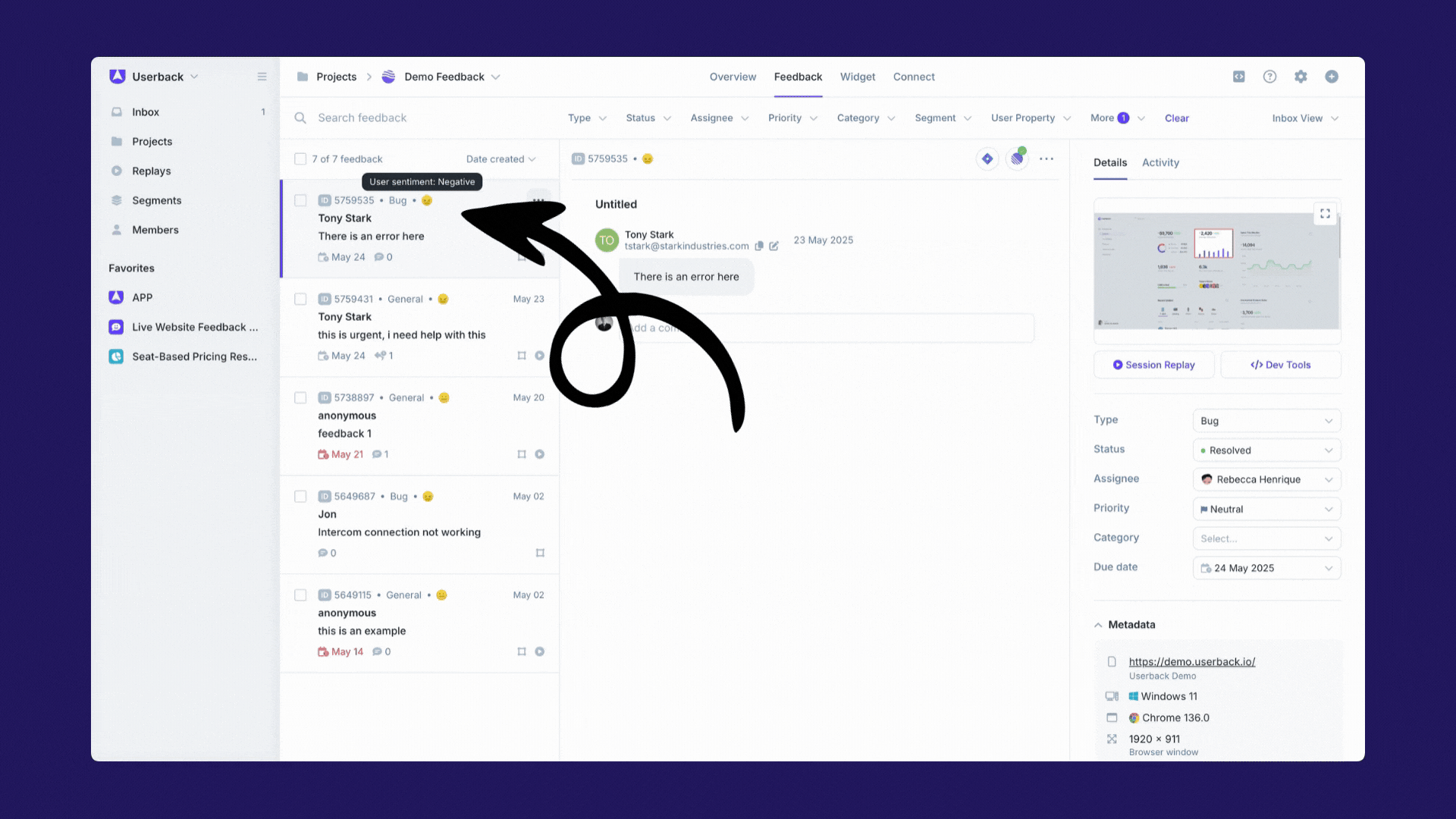 5. Quickly gauge user sentiment with AI Assist in the Feedback Sidebar