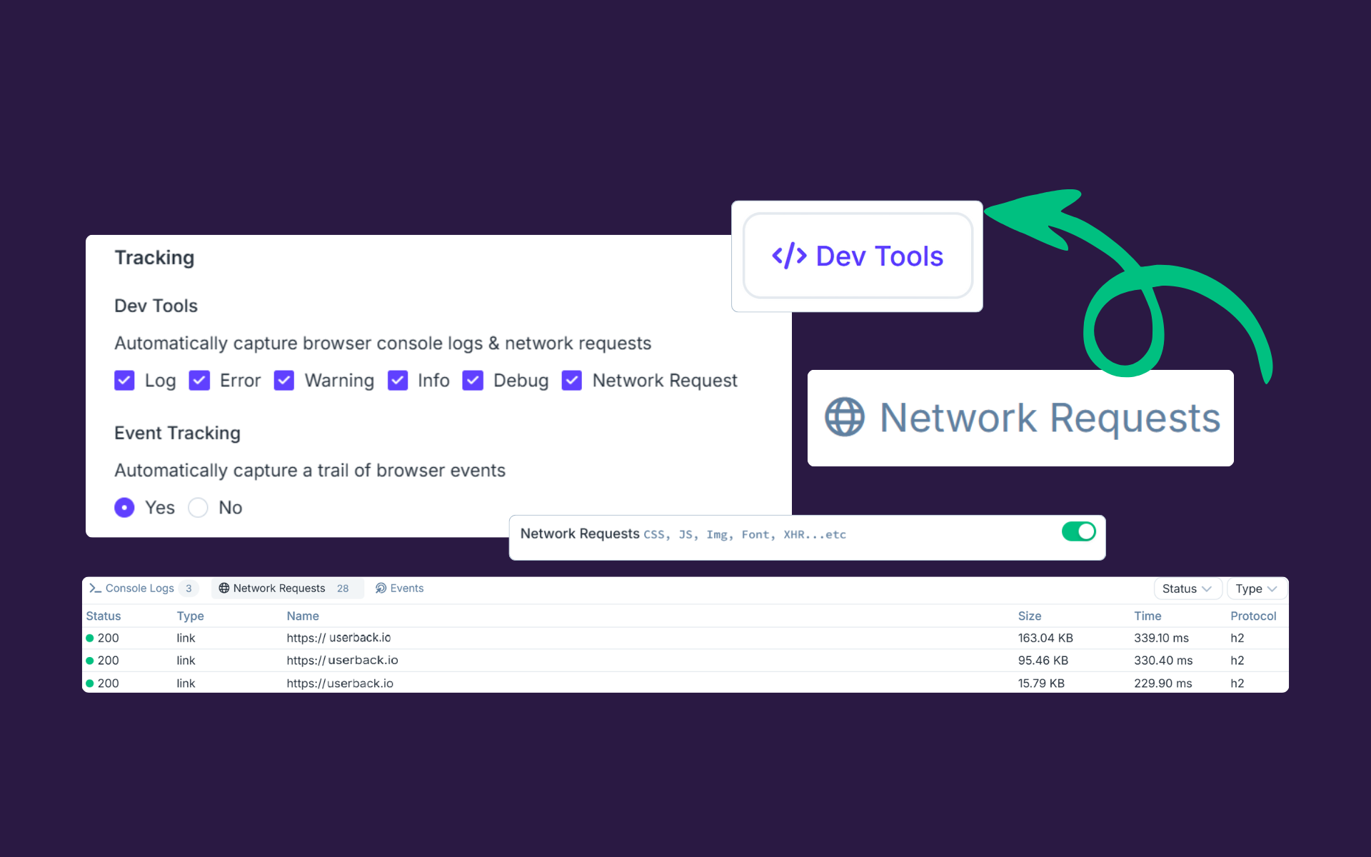 We’ve added Network Request tracking to Developer Tools in Userback! You can now capture outbound HTTP requests as part of feedback submissions and session replays.