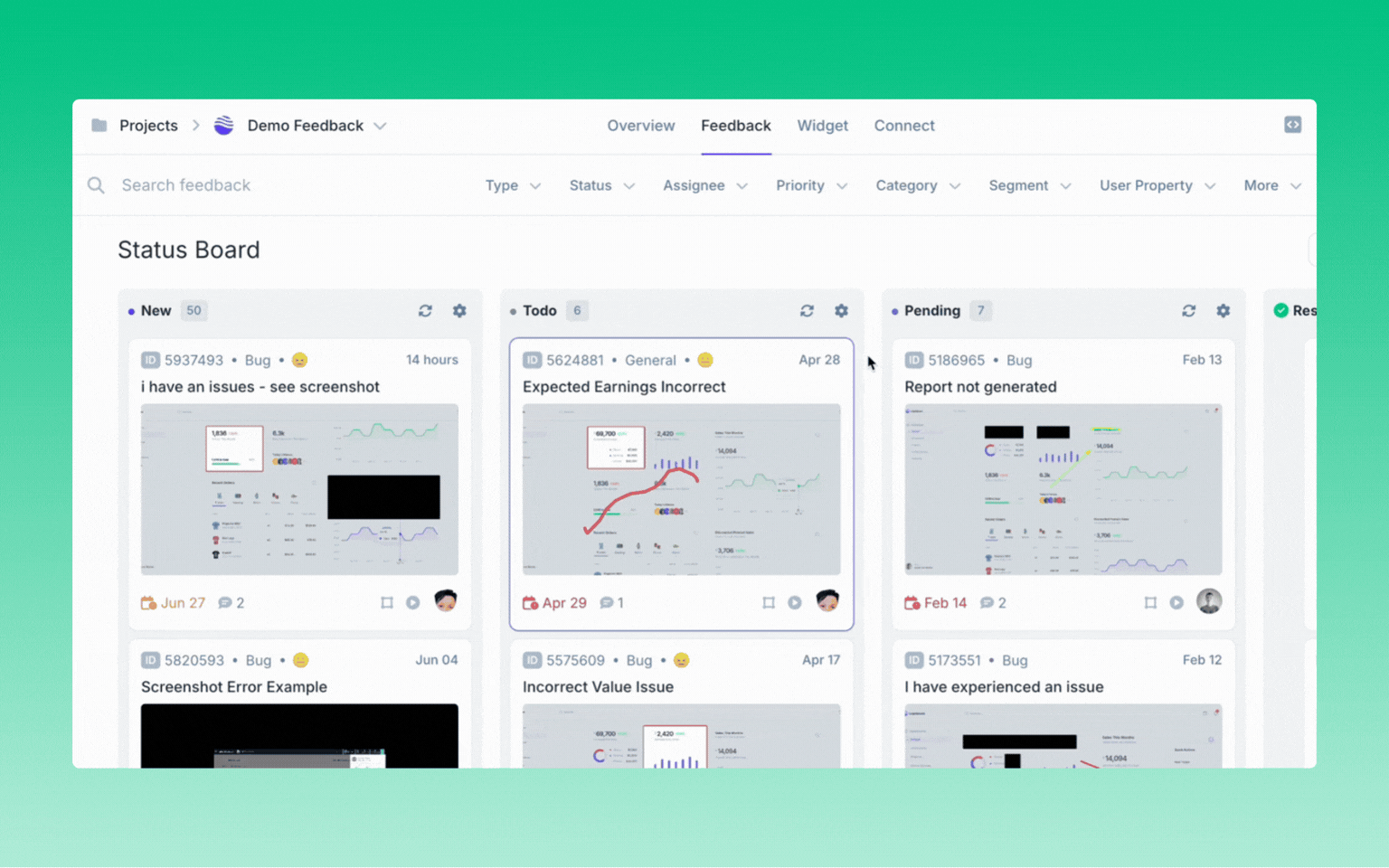 - Merge feedback seamlessly from the Inbox, Board View, or the feedback detail view, no need to switch screens.